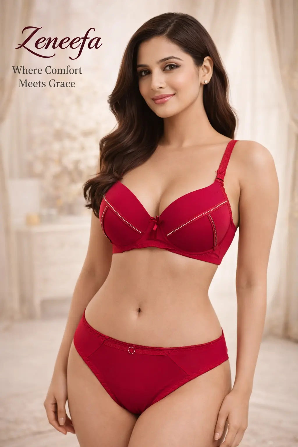 Zeneefa Double-Pad Push-Up Bra & Panty Set – Enhanced Shape & Elegant Comfort